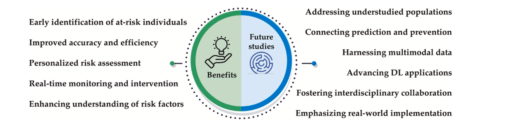 Suicide is a major global public health concern, and the application of artificial intelligence (AI) methods, such as natural language processing (NLP), machine learning (ML), and deep learning (DL), has shown promise in advancing suicide prediction and prevention efforts. Recent advancements in AI – particularly NLP and DL have opened up new avenues of research in suicide prediction and prevention. While several papers have reviewed specific detection techniques like NLP or DL, there has been no recent study that acts as a one-stop-shop, providing a comprehensive overview of all AI-based studies in this field. In this work, we conduct a systematic literature review to identify relevant studies published between 2019 and 2023, resulting in the inclusion of 156 studies. We provide a comprehensive overview of the current state of research conducted on AI-driven suicide prevention and prediction, focusing on different data types and AI techniques employed. We discuss the benefits and challenges of these approaches and propose future research directions to improve the practical application of AI in suicide research. AI is highly capable of improving the accuracy and efficiency of risk assessment, enabling personalized interventions, and enhancing our understanding of risk and protective factors. Multidisciplinary approaches combining diverse data sources and AI methods can help identify individuals at risk by analyzing social media content, patient histories, and data from mobile devices, enabling timely intervention. However, challenges related to data privacy, algorithmic bias, model interpretability, and real-world implementation must be addressed to realize the full potential of these technologies. Future research should focus on integrating prediction and prevention strategies, harnessing multimodal data, and expanding the scope to include diverse populations. Collaboration across disciplines and stakeholders is essential to ensure that AI-driven suicide prevention and prediction efforts are ethical, culturally sensitive, and person-centered. (Paper)